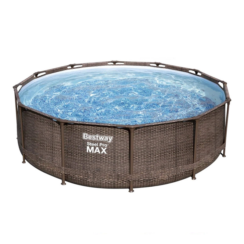- Im Lieferumfang enthalten sind der Bestway Steel Pro Max Ø366x100cm Pool, eine Filterpumpe für eine zuverlässige Reinigung, eine Filterkartusche, eine Sicherheitsleiter sowie selbstklebende Reparaturflicken.