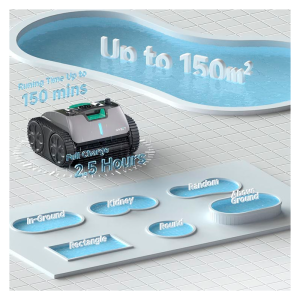 Der Roboter ist mit einem Dreifachmotor ausgestattet, der eine gründliche und effiziente Reinigung von mittelgroßen Pools garantiert. Er kann den Boden, die Wände und die Wasserlinie reinigen, was ihn zu einem vielseitigen und umfassenden Gerät für die Pflege jedes Pools macht.