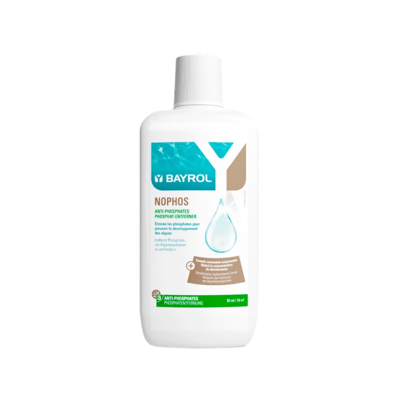 BAYROL Nophos 1 L ist ein hochwirksamer Phosphatentferner für Pools, der überschüssige Phosphate im Wasser zuverlässig bindet und über den Filter entfernt. Da Phosphate eine der Hauptnährstoffquellen für Algen sind, trägt Nophos aktiv dazu bei, Algenwachstum zu reduzieren und den Verbrauch von Desinfektionsmitteln zu senken.