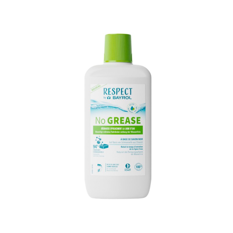 Hartnäckige Fettablagerungen an Wasserlinie und Skimmern sind oft schwer zu entfernen und beeinträchtigen die Optik Ihres Pools. Mit No GREASE von BAYROL gehören diese Probleme der Vergangenheit an. Die alkalische Flüssigkeit auf Basis von Olivenölseife löst effektiv Rückstände von Badegästen, Sonnencremes, Ölen und Luftverschmutzung.